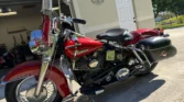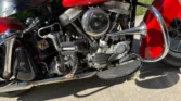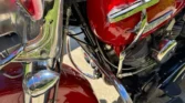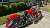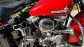 Vintage Harley Duo Glide styling — full fenders, wide handlebars, Buddy Seat, and chrome details