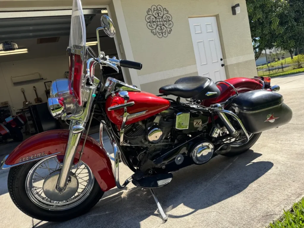 Rigid-style rear frame with hydraulic “Duo Glide” front forks for improved ride comfort